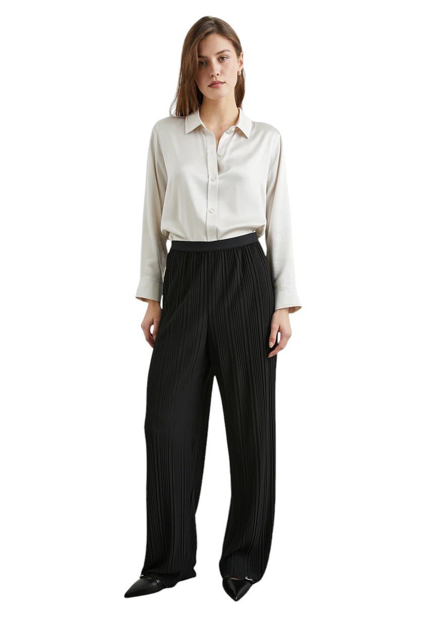 The “Liana Pant” in Jet from Rails combines elevated loungewear style with an exposed waistband and varied pleating. Made from heavyweight plissé, the flattering high waist makes them ideal for all-day comfort.
