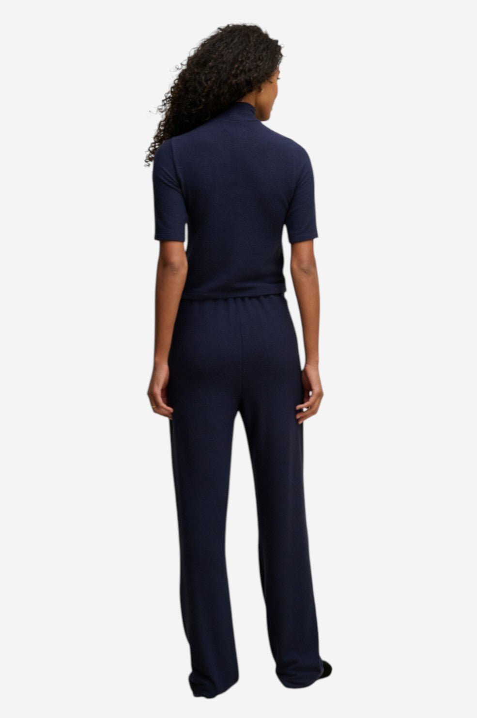 The “Malaya Top” from Velvet offers a refined take on everyday knits. This short-sleeve turtleneck is crafted from a lightweight cashmere knit in deep navy, with sleeves that hit just above the elbow for a flattering, transitional silhouette.