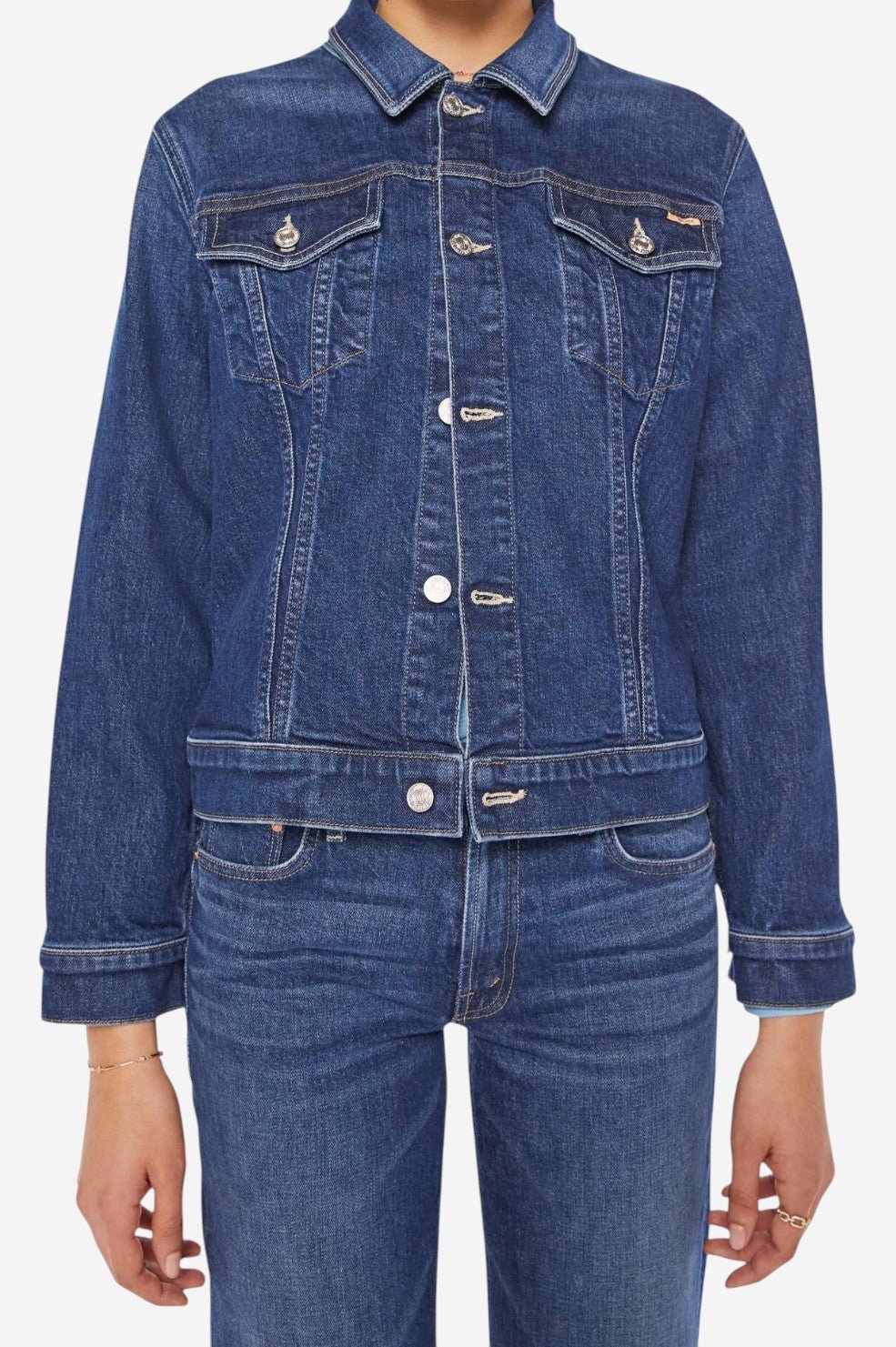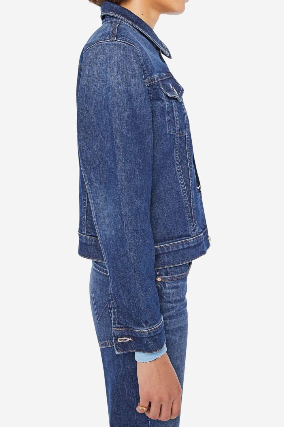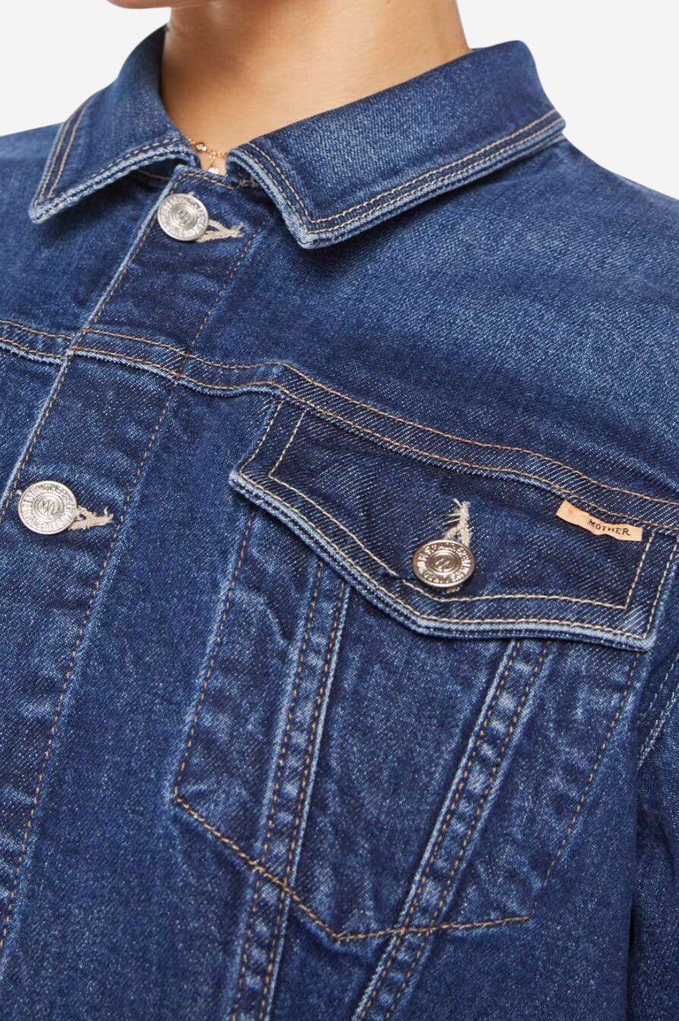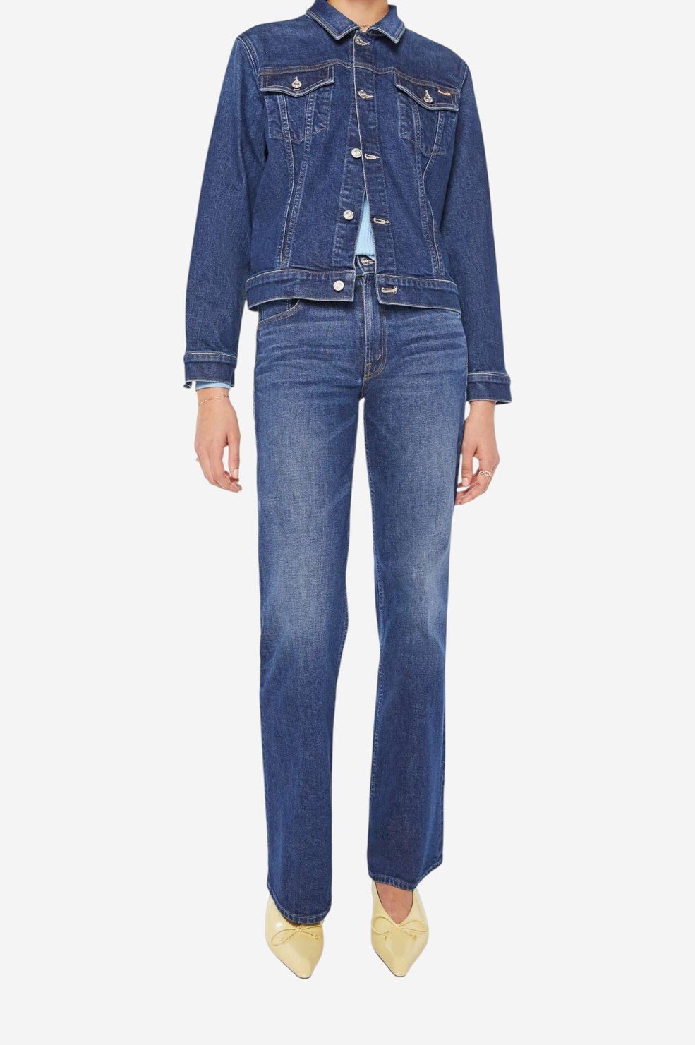 The “Bruiser” from MOTHER is a denim jacket with attitude—classic, versatile, and just the right touch of vintage charm. Designed with front patch pockets and a slightly cropped fit, it’s cut from semi-rigid SUPERIOR denim in the Perfectly Imperfect wash, a deep, vintage-inspired blue that only gets better with time. True to MOTHER’s way, it’s made to be broken in—because patience is a virtue.