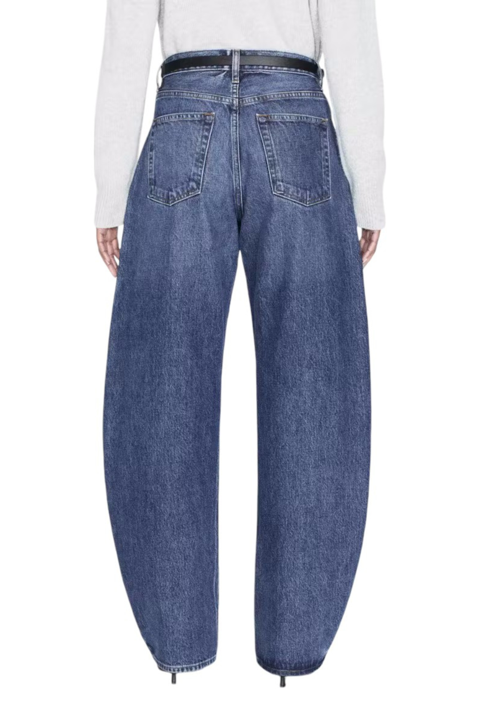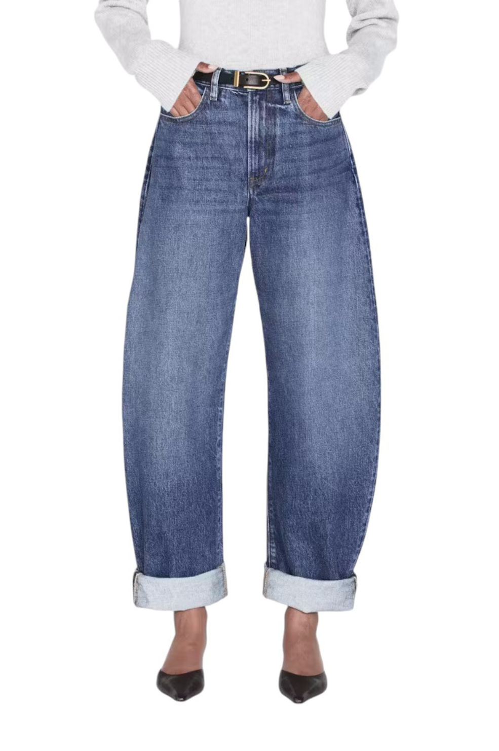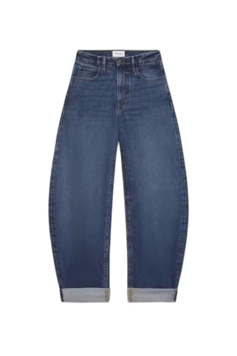 The “Bubble” from Frame is a bold interpretation of the barrel silhouette and is a must-have for your wardrobe. With a flattering high rise and curved outseam for a playful bubble effect, these jeans are designed to be cuffed at the ankle. The 2.5″ cuff can be unrolled for a longer, dramatic look.