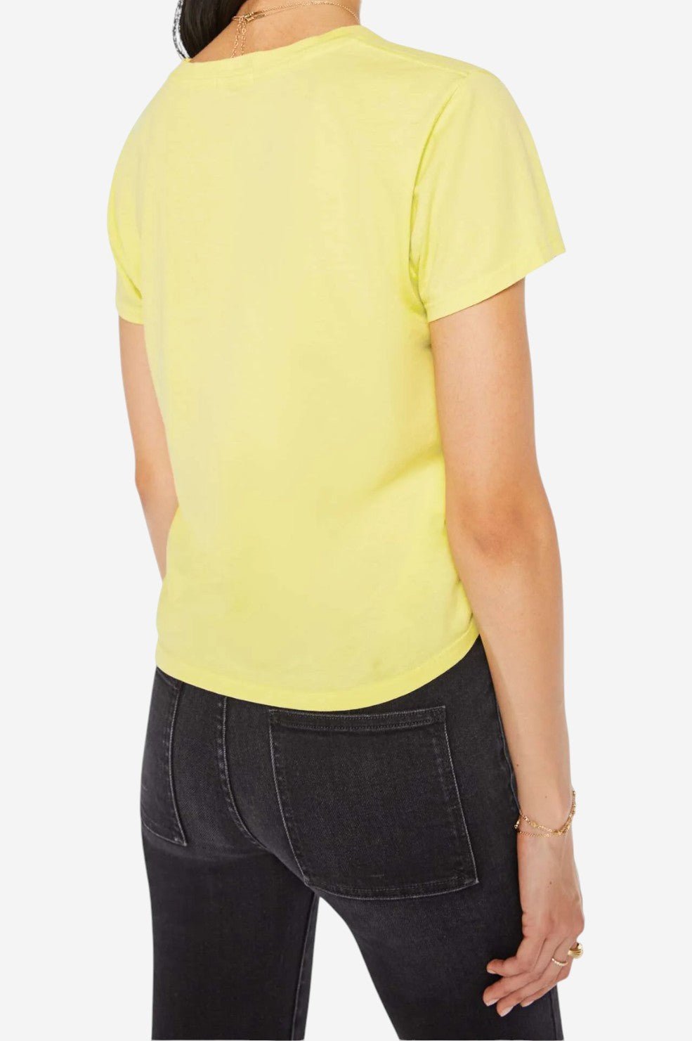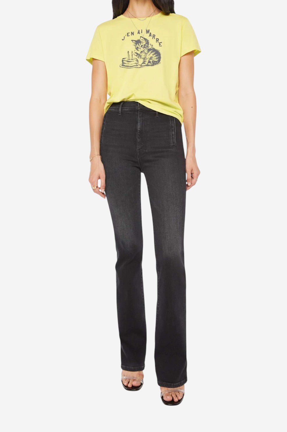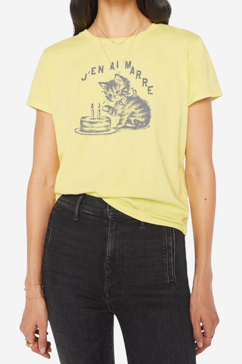 The “Lil Goodie Goodie” from MOTHER serves up vintage charm with a playful twist. In a soft pale yellow hue, this slightly sheer crewneck tee features a slim fit for that worn-in, retro feel. The French text and sweet kitten graphic add a dose of whimsy, making it an easy statement piece for casual days.